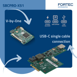 SBCPRO-X51 mit flexiblen M.2-Modulen für V-by-One und USB-C für Strom, DisplayPort und Touch
